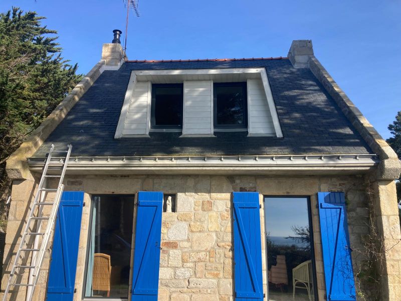 Notre entreprise est intervenue à Saint-Gildas-de-Rhuys, dans le Morbihan (56), pour l’entretien d’une façade en Isolation Thermique par l’Extérieur (ITE) et bardage aluminium joint debout, incluant la rénovation du chien-assis.
