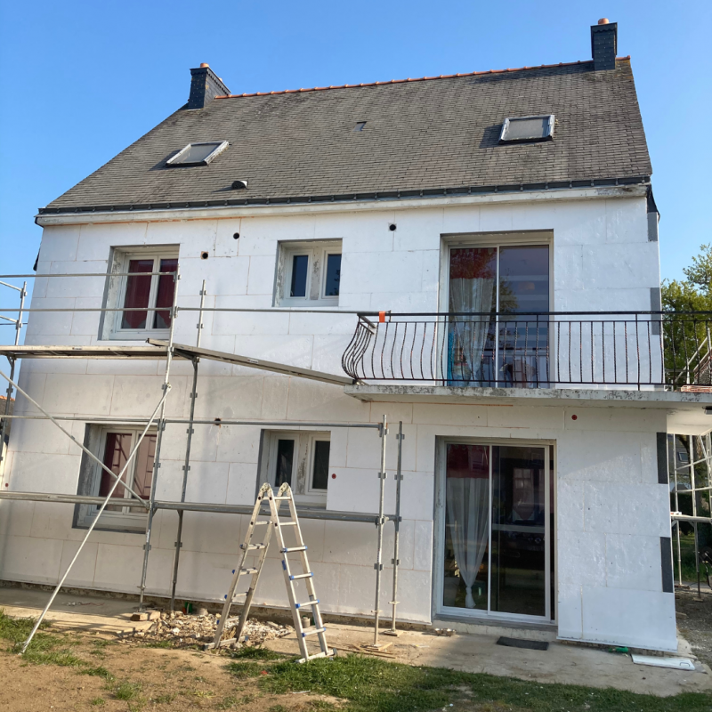 Nous avons réalisé une isolation thermique par l'extérieur avec une finition en enduit Jaune Touraine. En savoir plus sur l'ITE