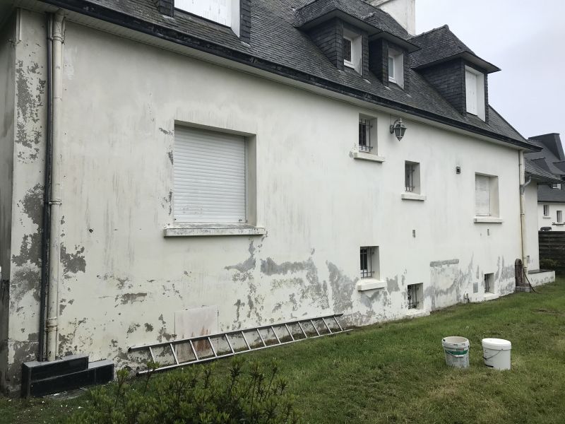 Chantier : Ravalement de façade Lieu : Quimper Age maison : 30 ans Matériau utilisé : - Résine hydrofuge LV façade